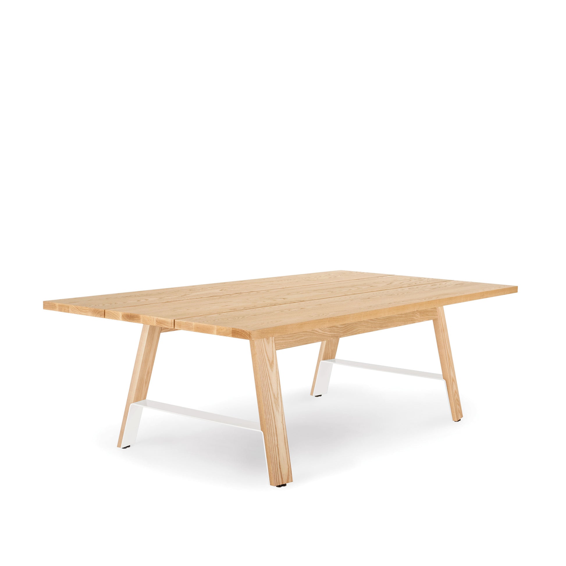- Table bases manufactured in solid ash wood and feature metal accent detail.