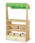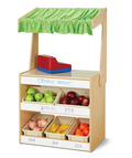 Add a fun way for children to learn about running a business, selling products, and even exchanging money with this Market Stand! This versatile unit can be used as a farmers market, a grocery stand, or a lemonade stand - it's the perfect addition to any early learning space. Five included Cubbie-Trays are mounted at an angle to easily display items for sale and three Write-n-Wipe rails allow kids to name their store, announce specials, or display prices. It also features a brightly colored fabric canopy and multiple shelves in the back that can be used for storing a cash register or additional grocery items. The transaction counter height is 26" from the floor.