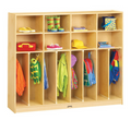 Eight locker sections in small space! One double coat hook is side mounted in each of the eight lockers for hanging jackets and bags. Eight open compartments above are great for storing hats and lunchboxes.